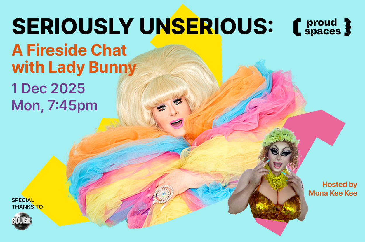 Here in Singapore for a quick visit to spin at Bougie Fever, Proud Spaces is honoured to catch Lady Bunny for a rare opportunity to chat about drag, pop culture, performance and more.